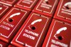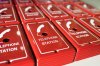 สกรีนกล่องเหล็ก สกรีนโลโก้ลงบนกล่องเหล็กสีแดง พิมพ์โลโก้โทรศัพท์ ข้อความ telephone station และกรอบสี่เหลี่ยมสีขาว
